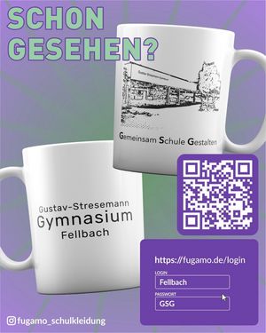 Unsere Schulgemeinschaft wollen wir auch nach außen zeigen und haben daher Schulkleidung in vielen Farben und Modellen sowie Sportbeutel und Tassen. Die Bestellung ist immer möglich, zu bestimmten Zeiten versandkostenfrei.